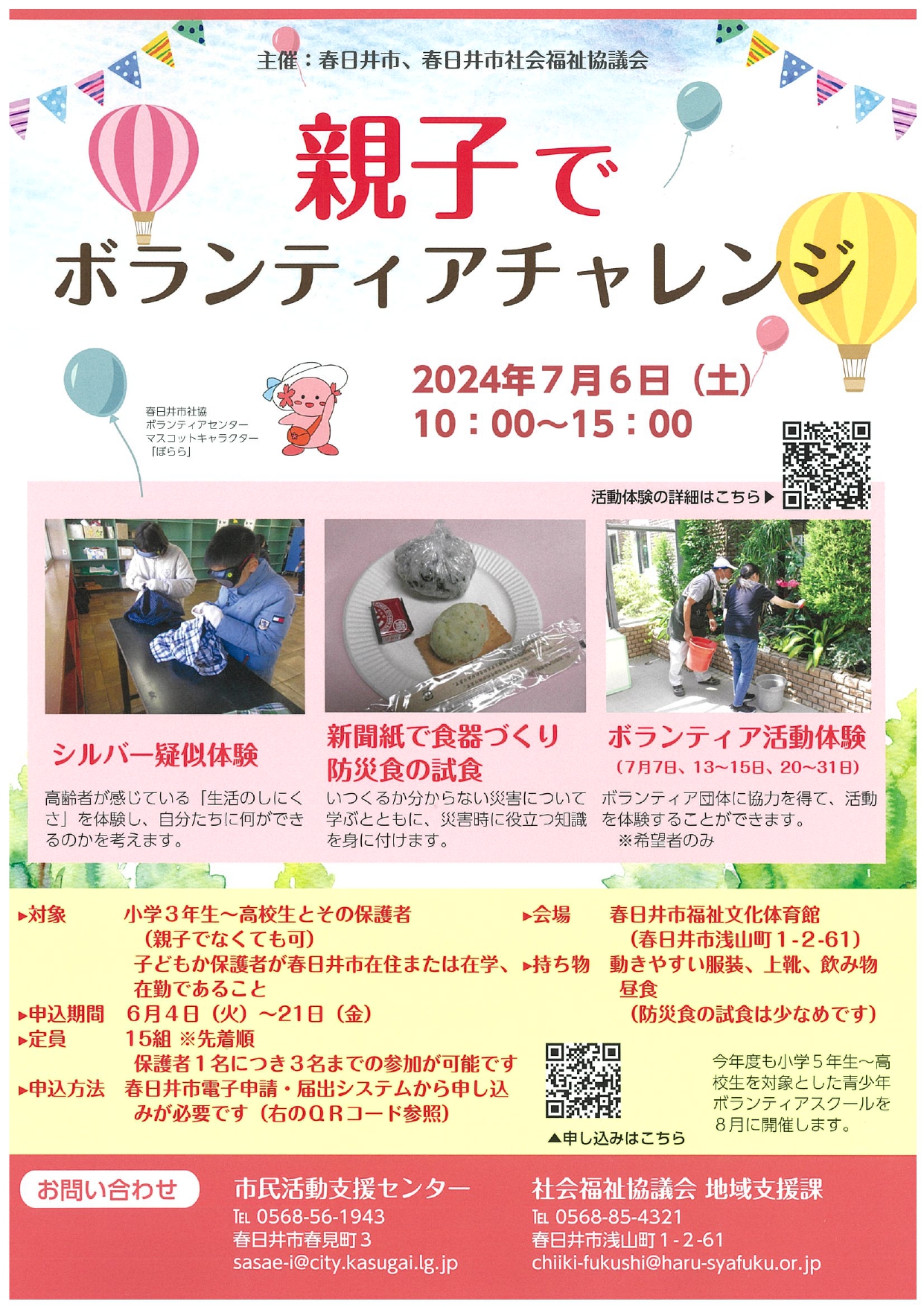 子どもと保護者が一緒にボランティアについて学び、体験することができるイベントです♪